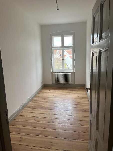 Bei dieser 3-Zimmerwohnung handelt es sich um einen Erstbezug nach Sanierung. Sie befindet sich im Erdgeschoss und verfügt über ein Fenster im hellgefliesten Bad mit Dusche sowie eine Fußbodenheizung. In den Räumen der gut geschnittenen Wohnung sind die Wände glatt gespachtelt, mit Vlies tapeziert und weiß gestrichen. Als Bodenbelag sind aufgearbeitete Holzdielen vorhanden. In der Küche befindet sich eine kleine Kammer, die man als Stau- und Lagerraum nutzen kann. Die Wohnung verfügt über einen Balkon, einen Keller und einen hofseitigen Sonnenschutz.