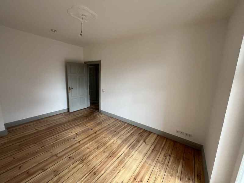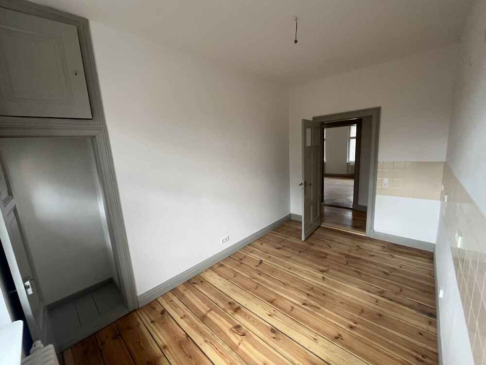 Bei dieser 3-Zimmerwohnung handelt es sich um einen Erstbezug nach Sanierung. Sie befindet sich im 1. Obergeschoss und verfügt über ein Fenster im hellgefliesten Bad mit Badewanne sowie eine Fußbodenheizung. In den Räumen der gut geschnittenen Wohnung sind die Wände glatt gespachtelt, mit Vlies tapeziert und weiß gestrichen. Als Bodenbelag sind aufgearbeitete Holzdielen vorhanden. In der Küche befindet sich eine kleine Kammer, die man als Stau- und Lagerraum nutzen kann.