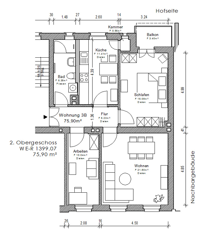 Das Wohnhaus wurde saniert und verfügt über 3- und eine 4-Raumwohnungen teilweise mit Balkon. Öffentliche Parkmöglichkeiten befinden sich auf der gegenüberliegenden Straßenseite.