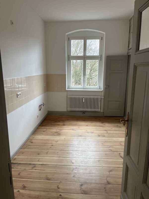 Bei dieser 3-Zimmerwohnung handelt es sich um einen Erstbezug nach Sanierung. Sie befindet sich im 2. Obergeschoss und verfügt über ein Fenster im hellgefliesten Bad mit Dusche sowie eine Fußbodenheizung. In den Räumen der gut geschnittenen Wohnung sind die Wände glatt gespachtelt, mit Vlies tapeziert und weiß gestrichen. Als Bodenbelag sind Holzdielen vorhanden. In der Küche befindet sich eine kleine Kammer, die man als Stau- und Lagerraum nutzen kann. Die Wohnung verfügt über einen Balkon, Keller und ein hofseitigen Sonnenschutz.